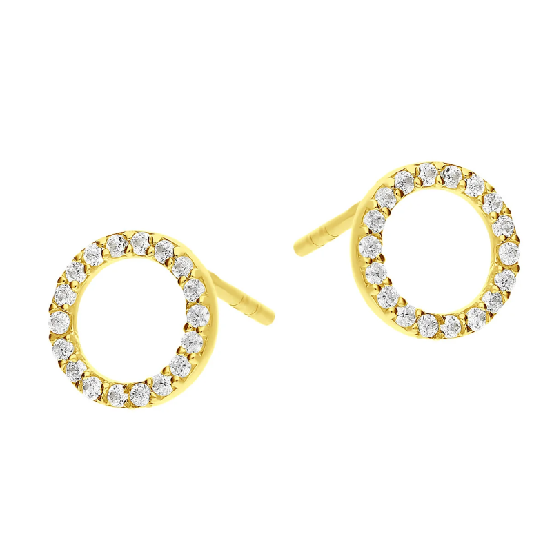 Złote kolczyki w formie ramki koła, ozdobione białymi cyrkoniami, to elegancka i nowoczesna biżuteria, która przyciąga subtelnym blaskiem. Cyrkonie osadzone na delikatnej ramce kolczyków nadają im lekkości, a jednocześnie dodają lśniącego akcentu, tworząc piękny kontrast z ciepłym odcieniem złota.