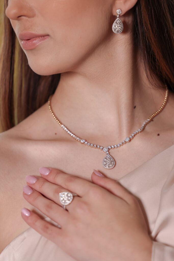 Odpowiednio dobrana biżuteria ślubna nie powinna dominować nad suknią, lecz współgrać z nią, tworząc harmonijną i stylową kompozycję.