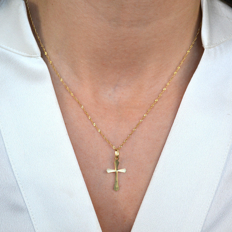 Złote krzyżyki – proste, eleganckie lub z ozdobnymi detalami – idealne dla dzieci i dorosłych.